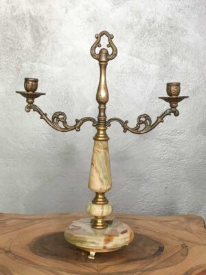 Candeliere bugia antico in ottone con alza candela XIX sec