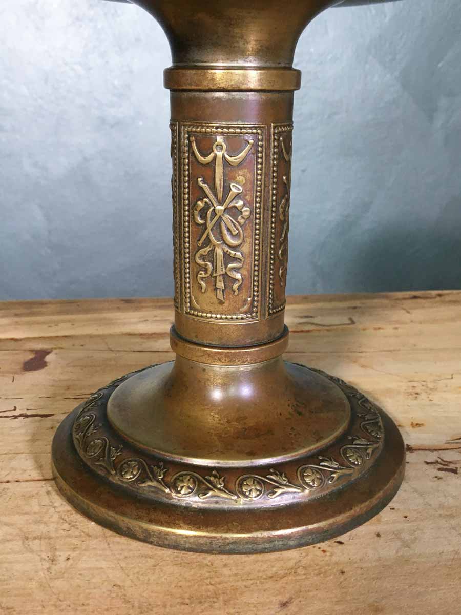 Antica alzata Liberty in metallo brunito con decori sbalzati