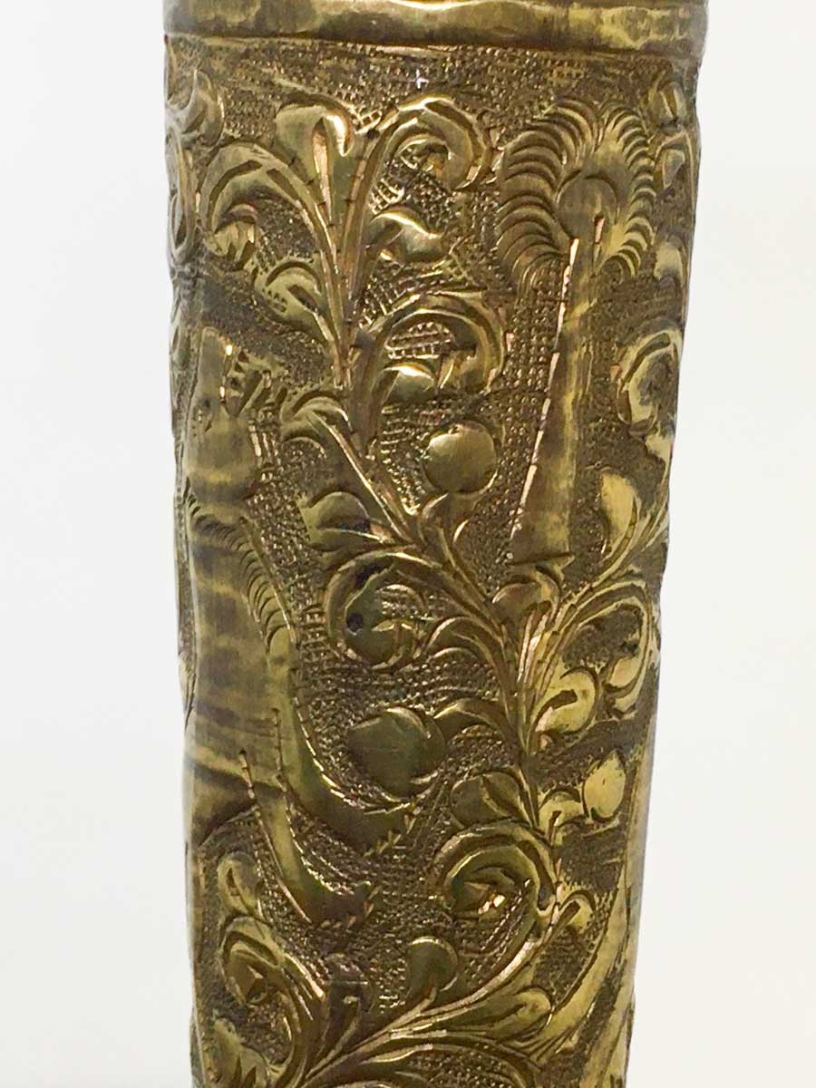 Antico vaso indiano ottone cesellato e sbalzato