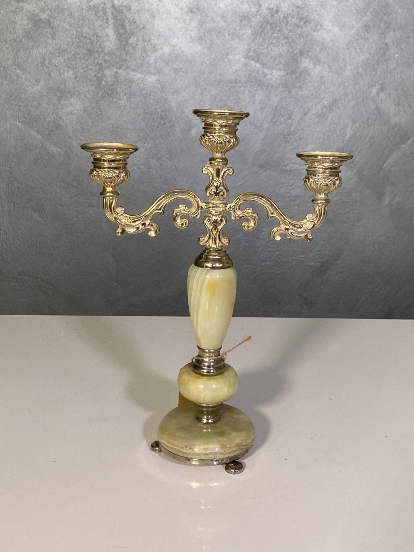 Candelabro antico in metallo e onice vintage mid century
