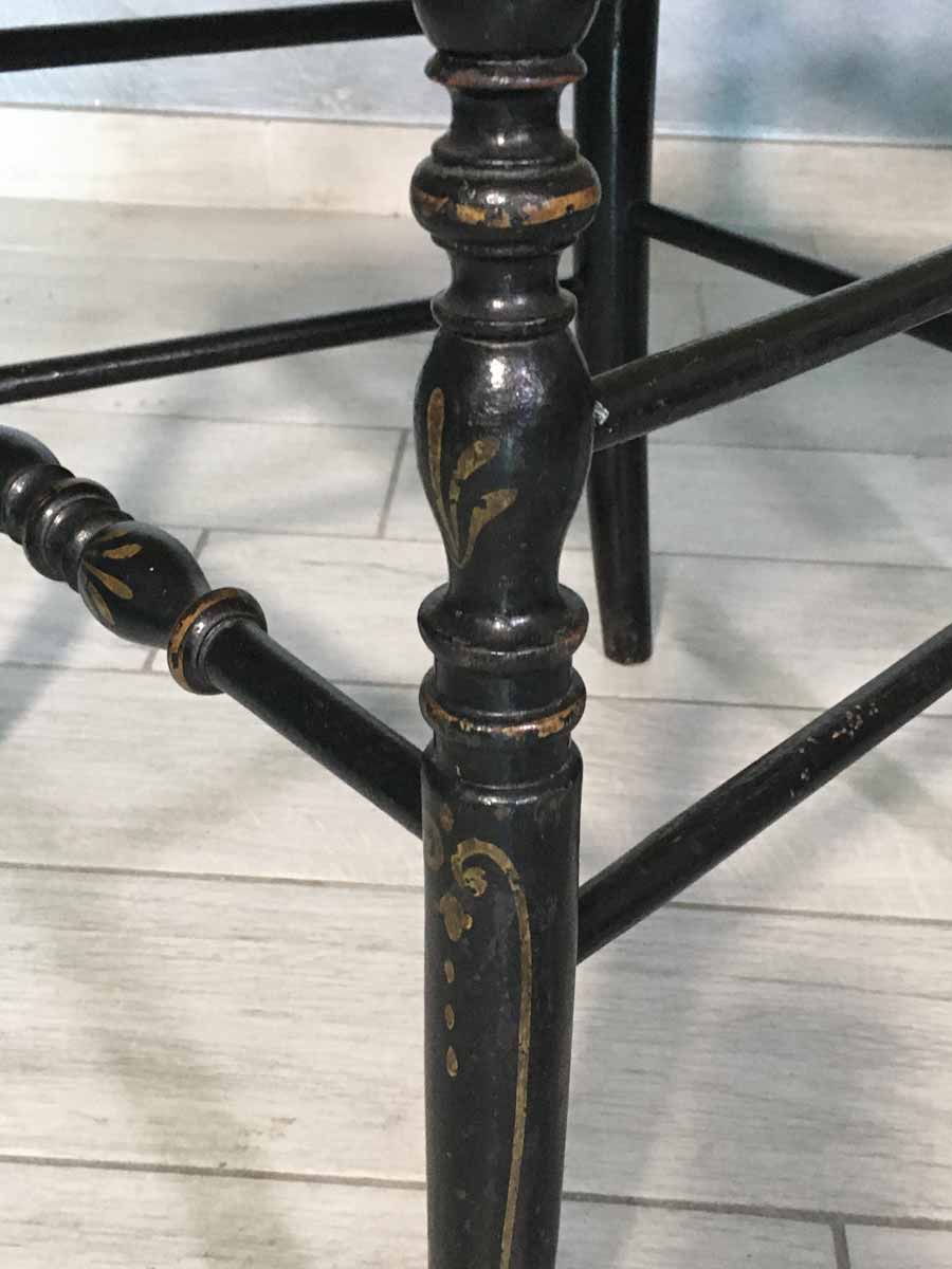 Coppia sedie antiche Napoleone III nere con decoro fine XIX secolo con struttura in buone condizioni, sedute ex paglia di Vienna