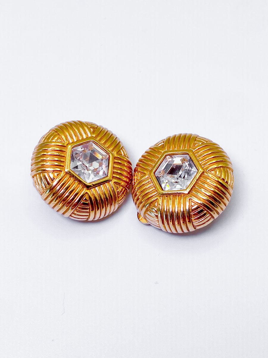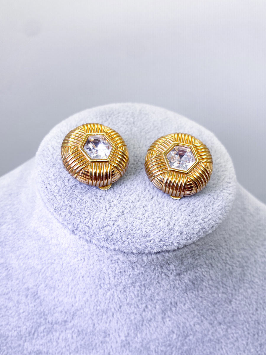 Orecchini vintage Swarovski marchiato S.A.L. con cristallo, molto eleganti con finitura color oro. Il design raffinato li rende perfetti per ogni occasione