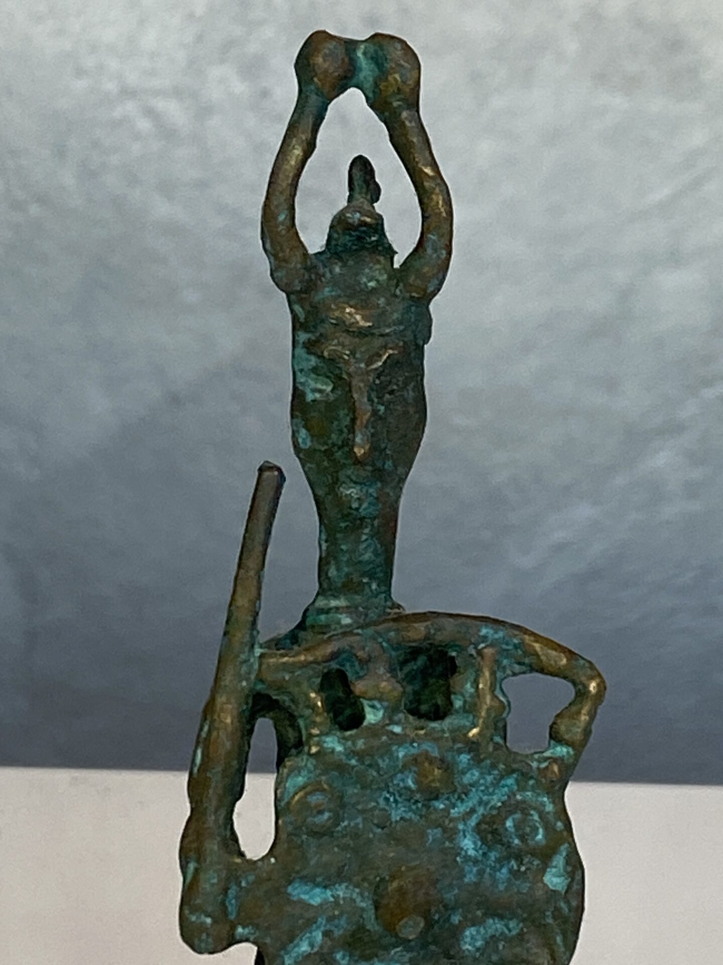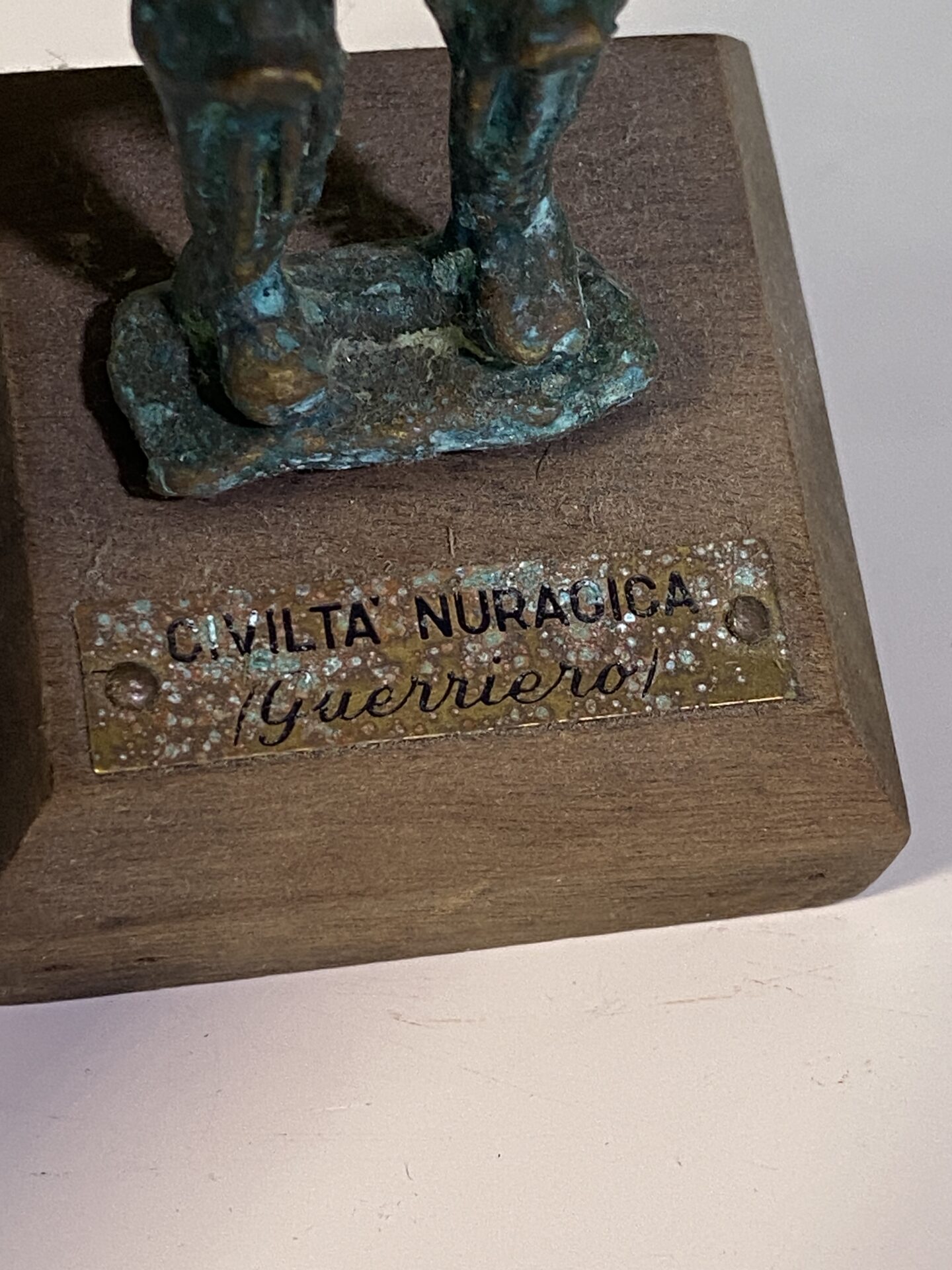 Scultura in bronzo – Bronzetto nuragico, replica raffigurante guerrieri della Sardegna antica (età nuragica). Oggetto da collezione mid-century, realizzato con cura nei dettagli e in condizioni perfette.