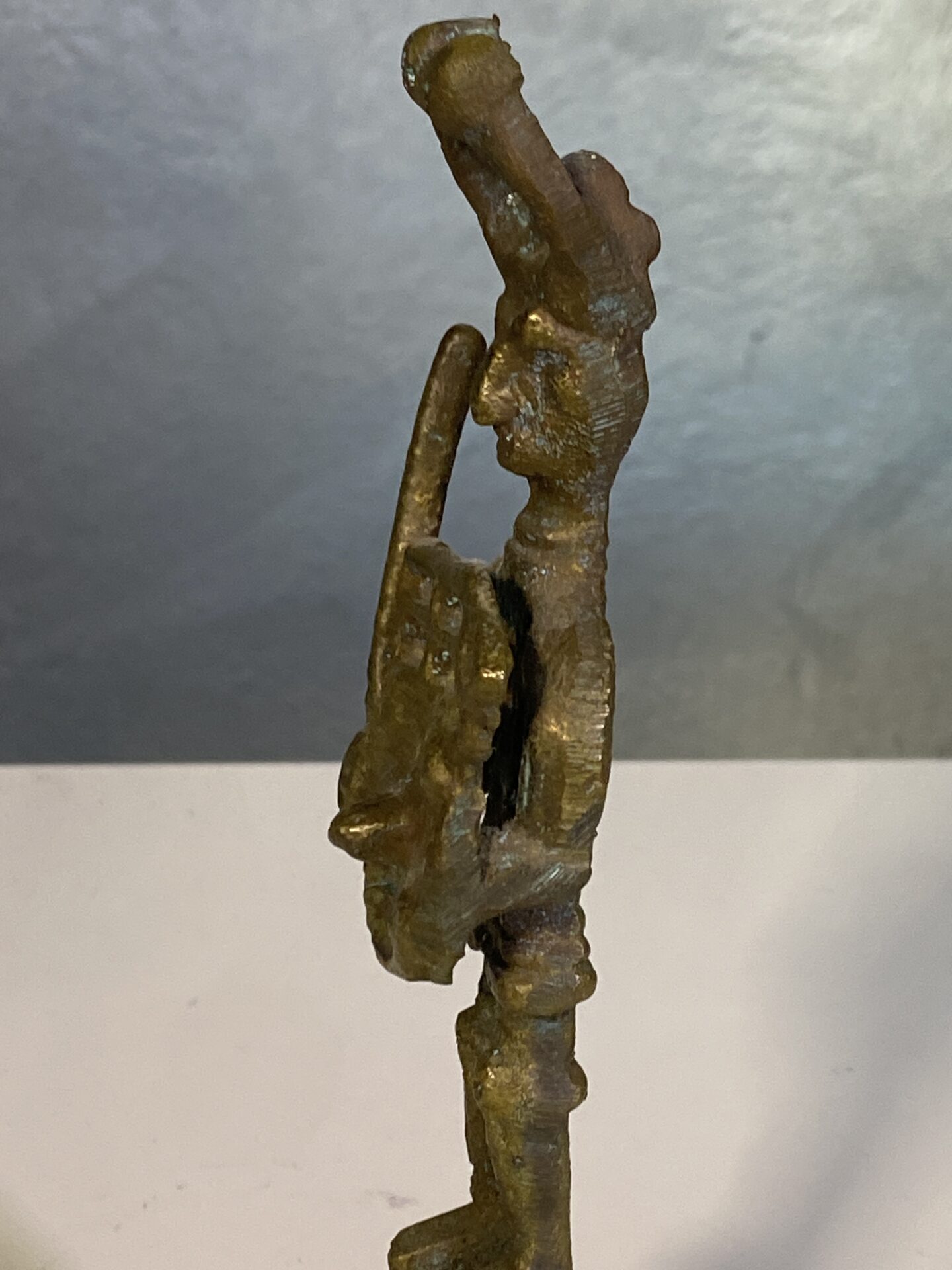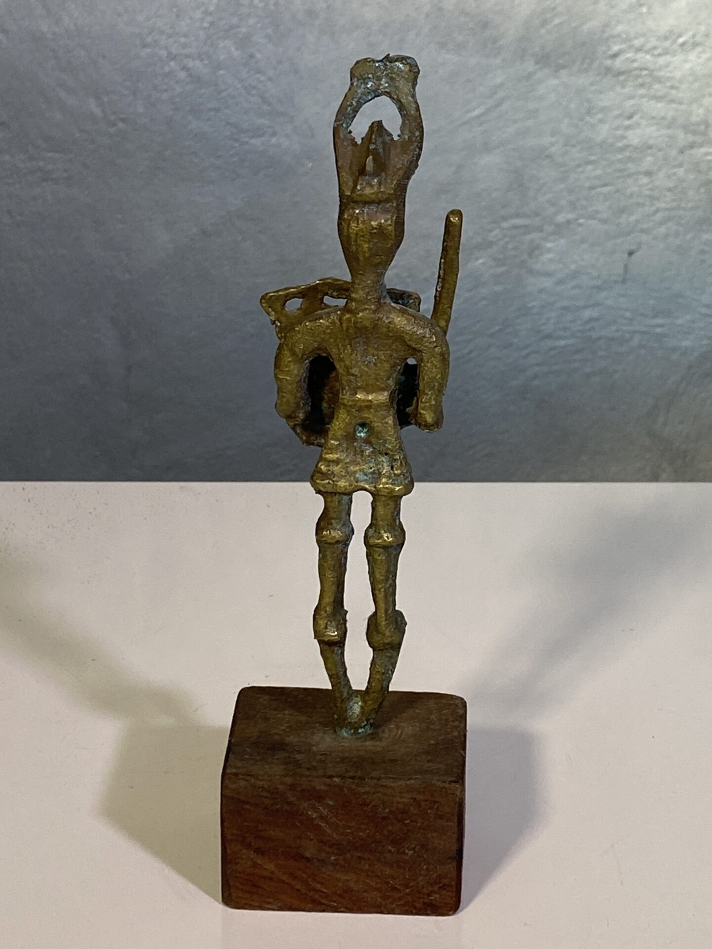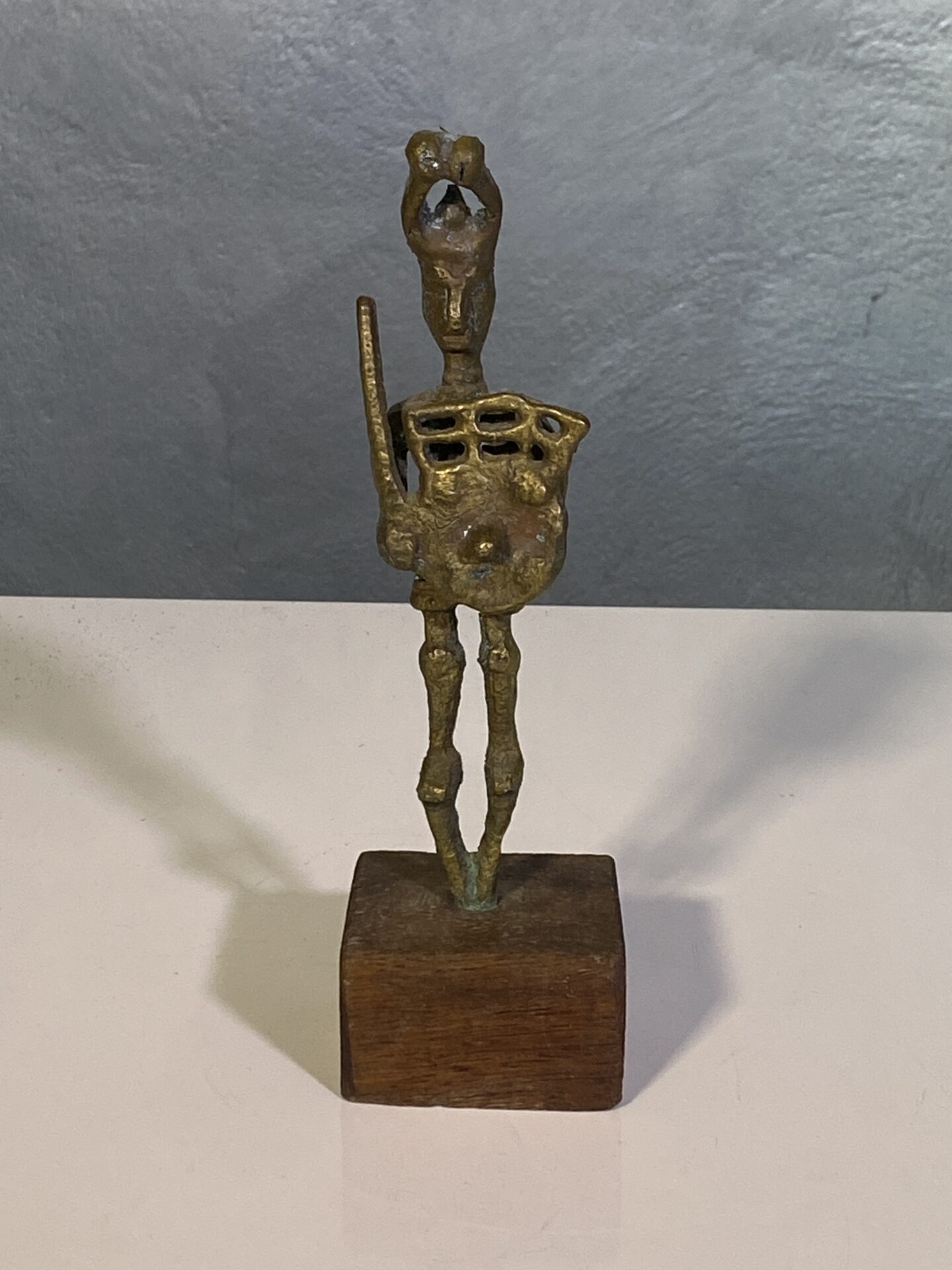 Scultura in bronzo – Bronzetto nuragico, replica raffigurante guerrieri della Sardegna antica (età nuragica). Oggetto da collezione mid-century, realizzato con cura nei dettagli e in condizioni perfette.