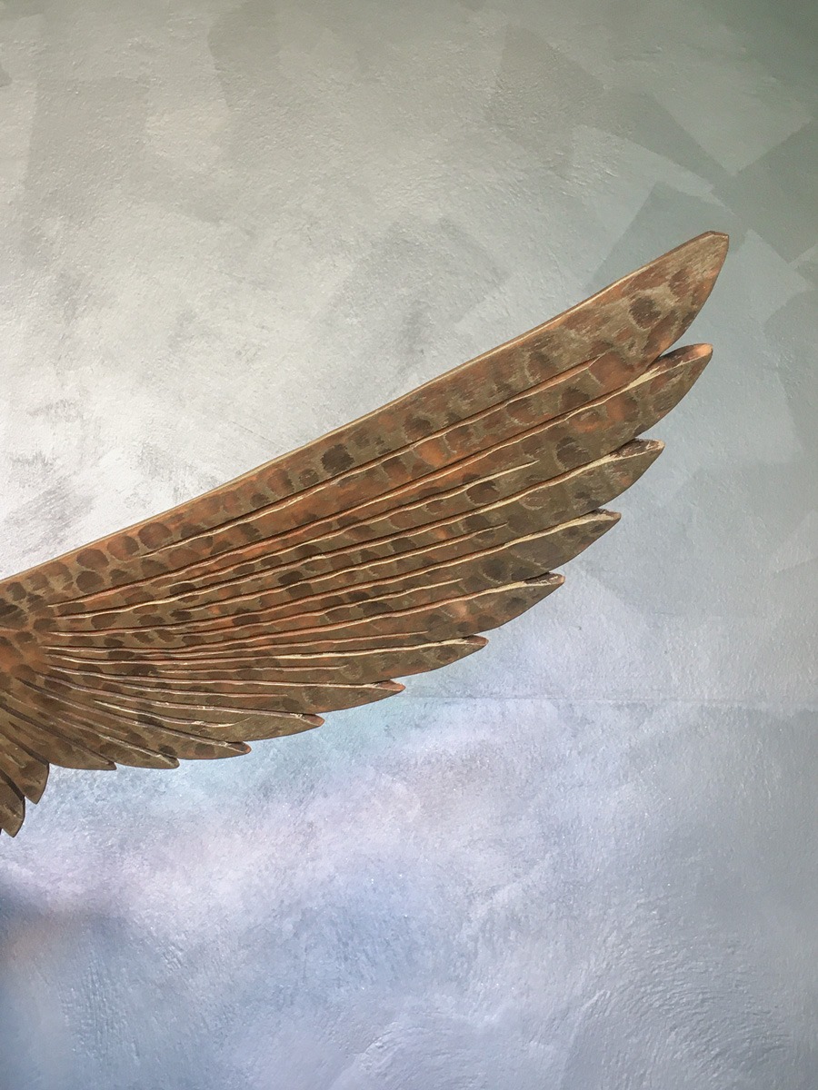 Con la sua altezza di 53 cm e un’apertura alare di ben 140 cm, è un pezzo imponente e affascinante, capace di diventare il fulcro visivo di un ambiente, perfetta per arredare grandi spazi, ingressi o ambienti di rappresentanza.